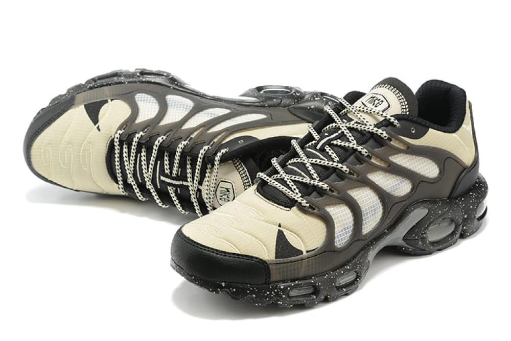 حذاء نايك Air Max Terrascape PLUS من تصميم نايكي، يتميز هذا المنتج بأجزاء داخلية بوسائد ونعل مطاطي ضد الانزلاق وتوقيع علامة نايكي ولمسة شريط أمامي وبطانة بطباعة شعار نايكي