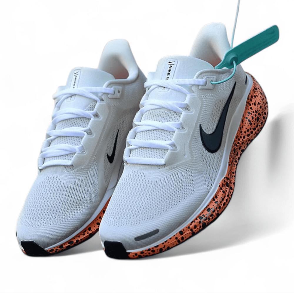 حذاء نايك Pegasus 41 من تصميم نايكي، يتميز هذا المنتج بأجزاء داخلية بوسائد ونعل مطاطي ضد الانزلاق وتوقيع علامة نايكي ولمسة شريط أمامي وبطانة بطباعة شعار نايكي