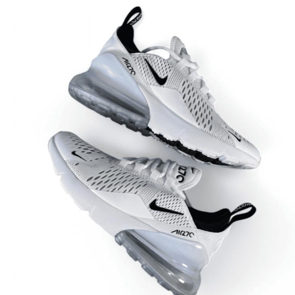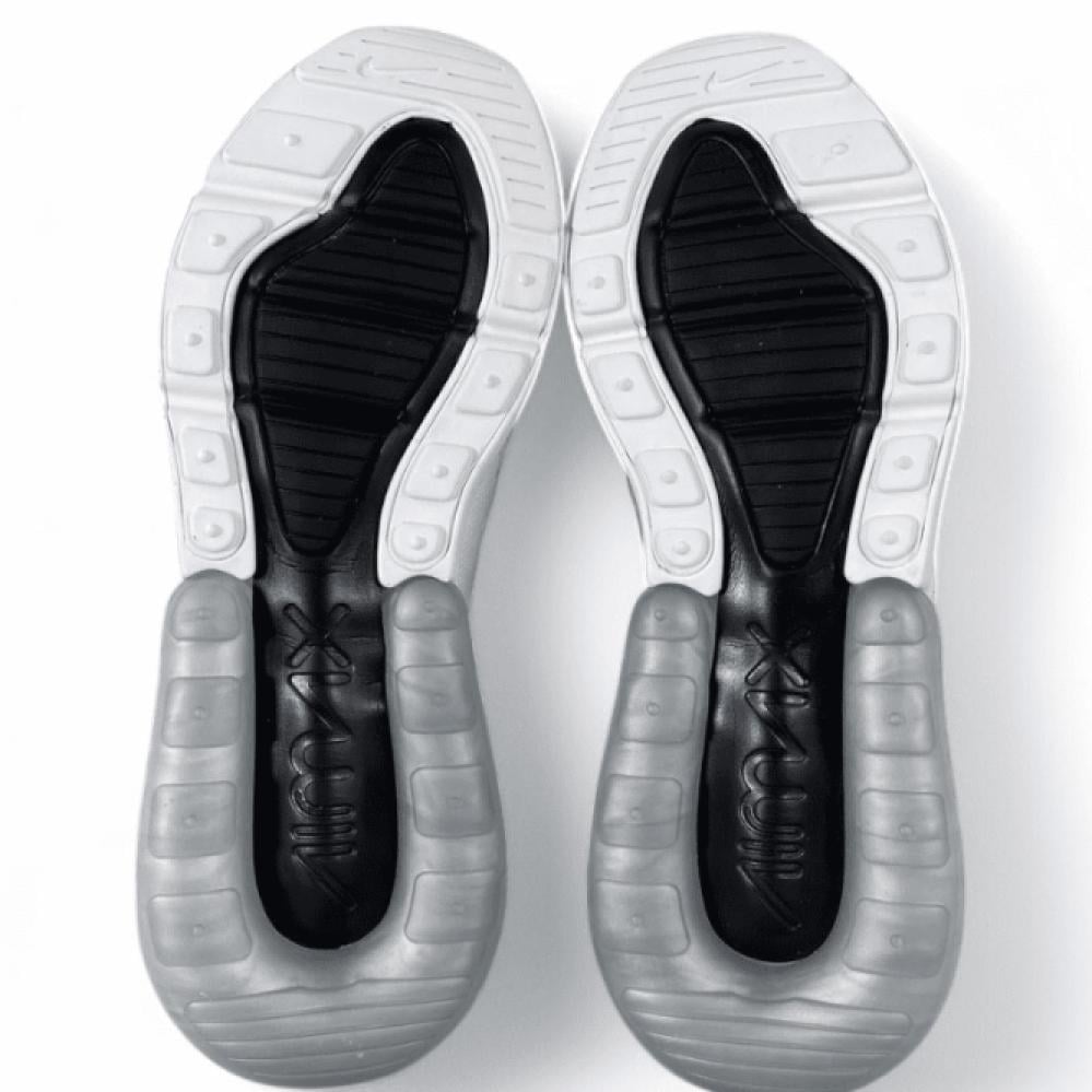 حذاء نايك NIKE Air max 270 من تصميم نايكي، يتميز هذا المنتج بأجزاء داخلية بوسائد ونعل مطاطي ضد الانزلاق وتوقيع علامة نايكي ولمسة شريط أمامي وبطانة بطباعة شعار نايكي
