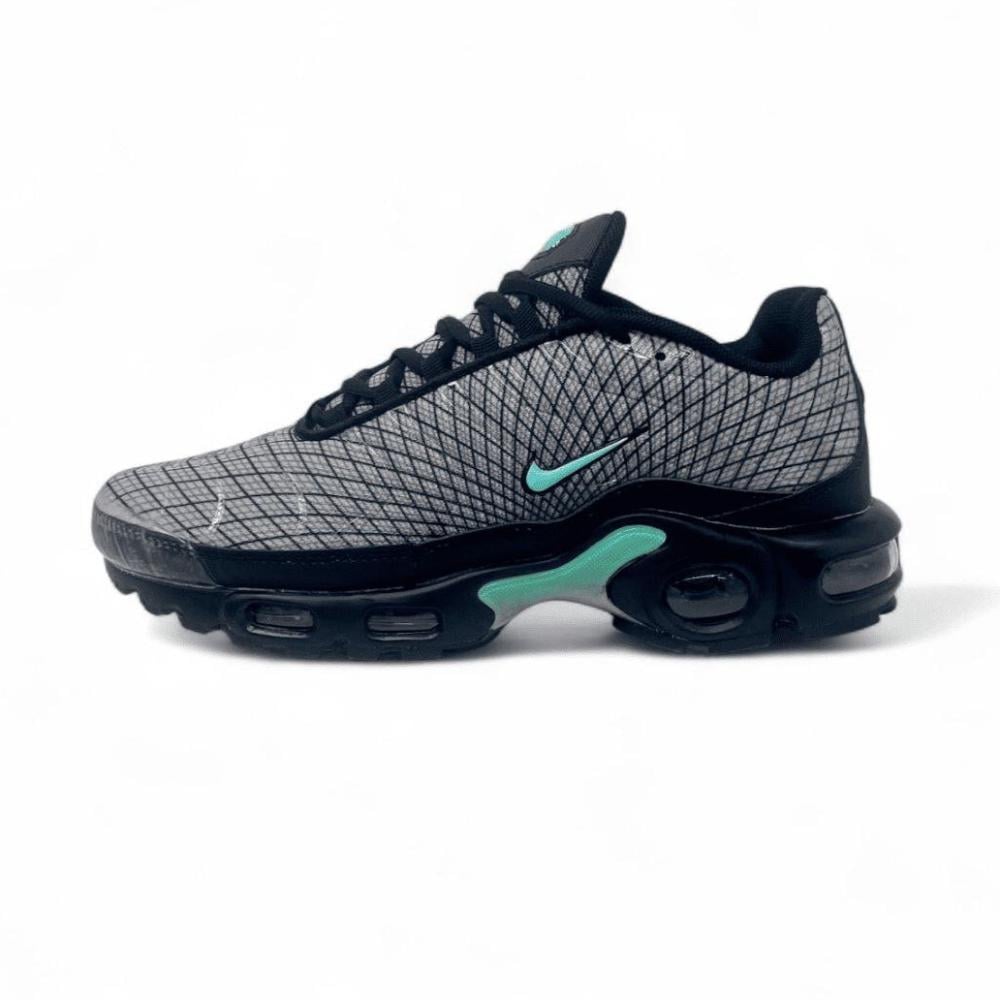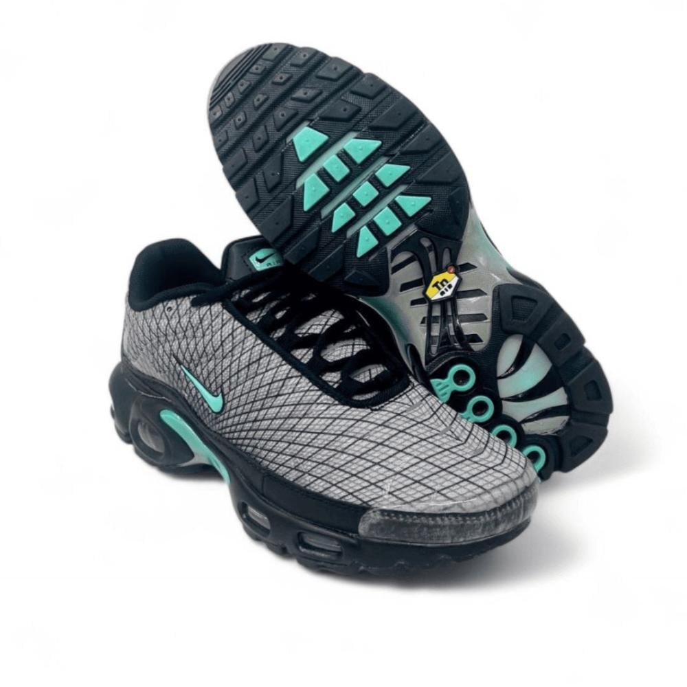 حذاء نايك NIKE Air max plus من تصميم نايكي، يتميز هذا المنتج بأجزاء داخلية بوسائد ونعل مطاطي ضد الانزلاق وتوقيع علامة نايكي ولمسة شريط أمامي وبطانة بطباعة شعار نايكي