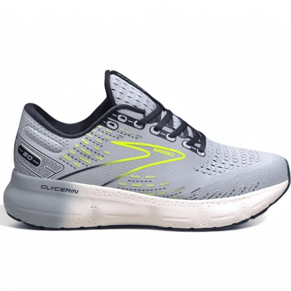 من تصميم شركة بروكس ، يتميز هذا المنتج بأجزاء داخلية بوسائد ونعل مطاطي ضد الانزلاق وتوقيع علامة Brooks