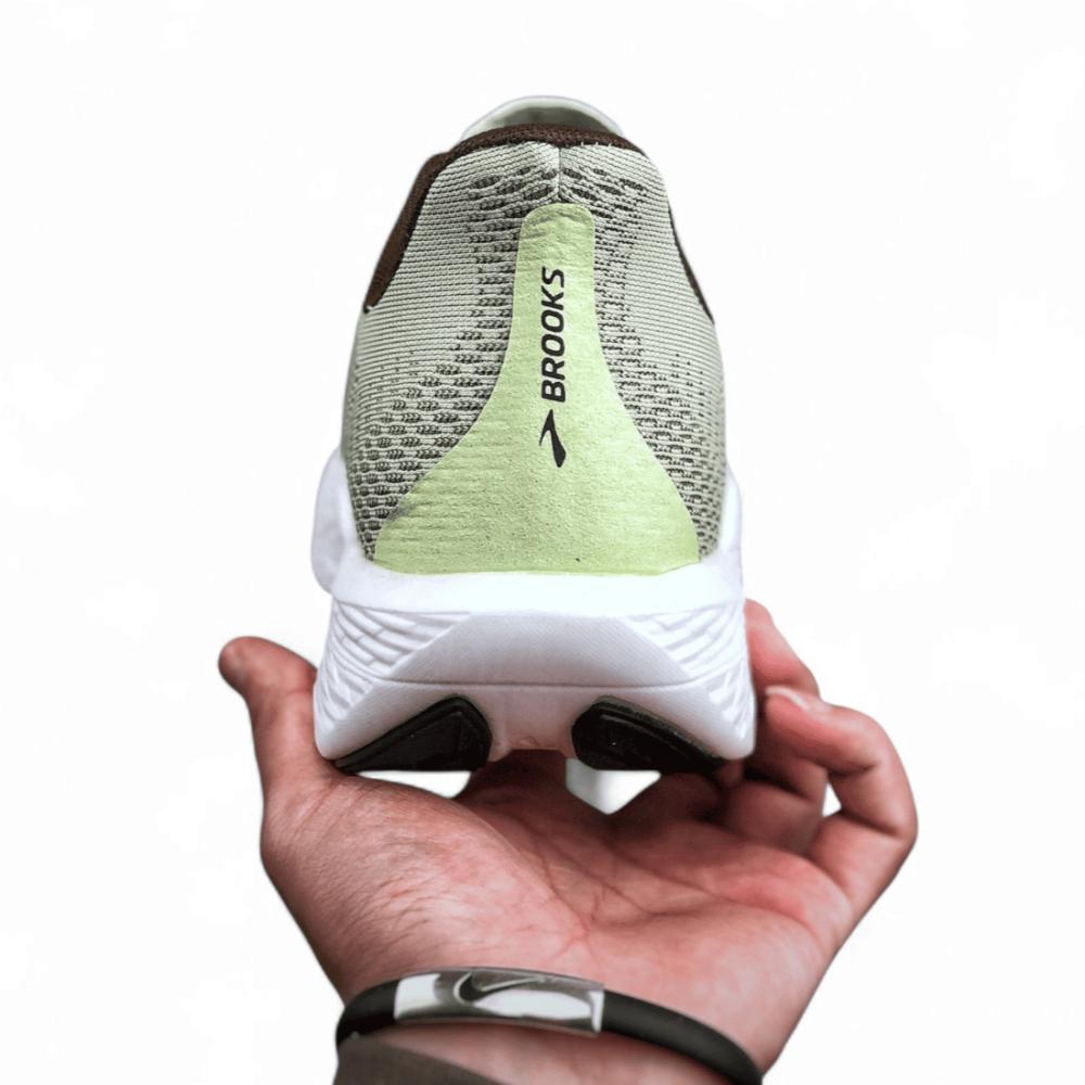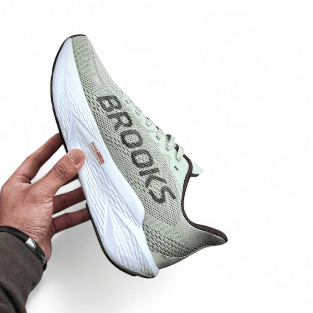 من تصميم شركة بروكس ، يتميز هذا المنتج بأجزاء داخلية بوسائد ونعل مطاطي ضد الانزلاق وتوقيع علامة Brooks
